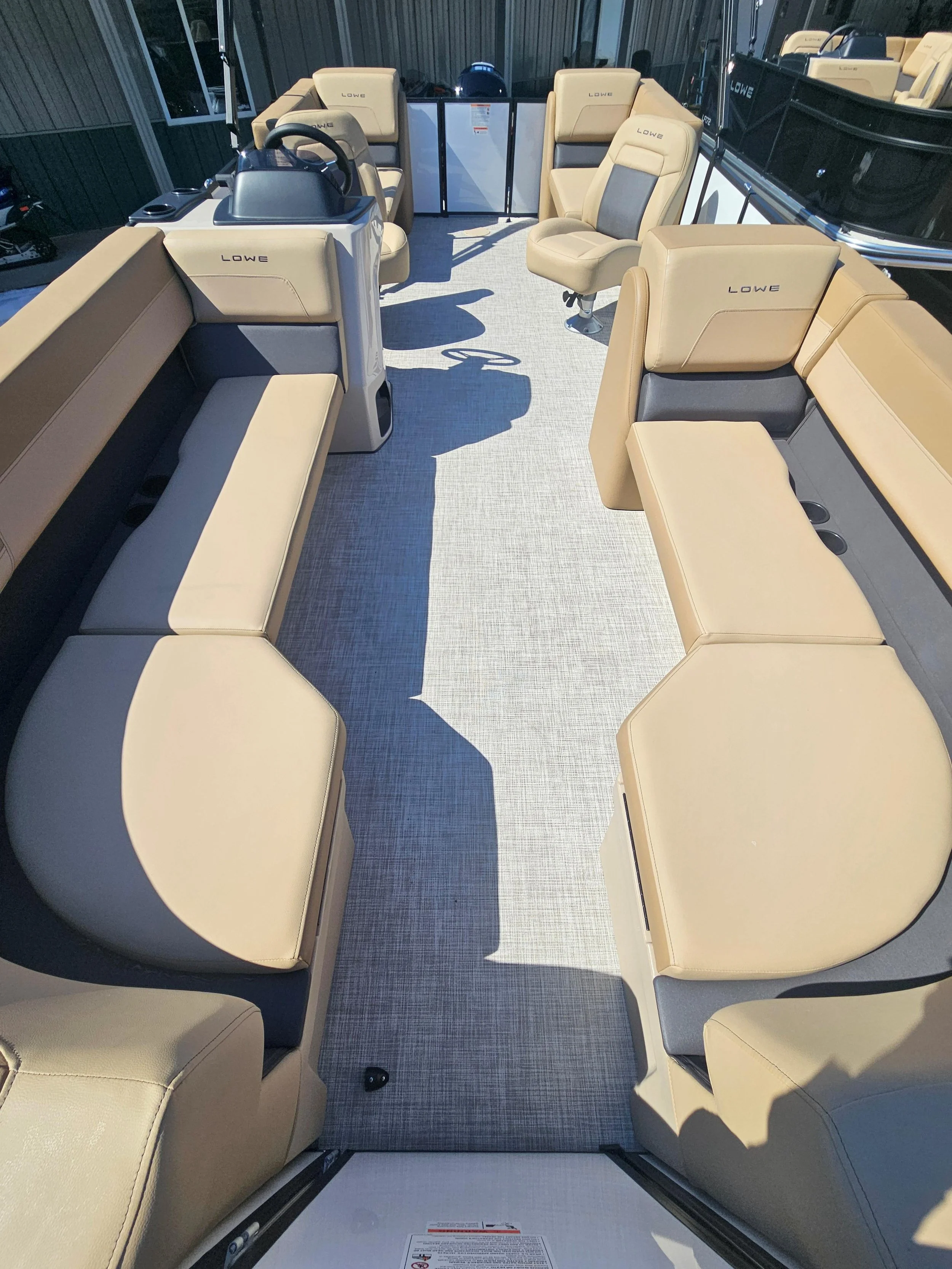 This boat includes all standard features plus the following upgrades: White metallic with black metallic accents and tan upholstery, chrome package, tilt steering, factory mooring cover, wave tamer with lifting strakes and deluxe vinyl flooring.